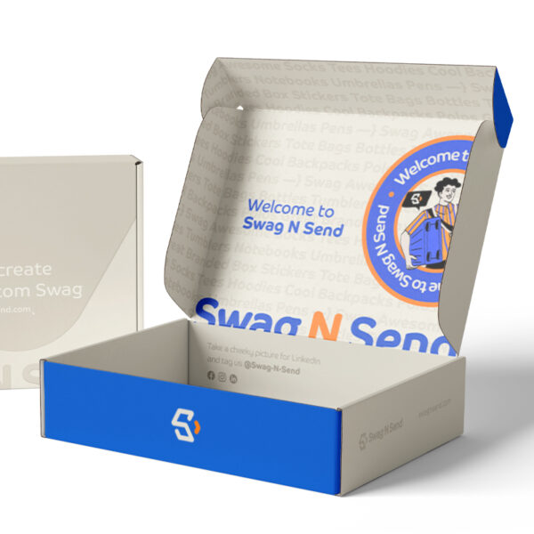 Leave an amazing impression and send your recipient Swag in a double-sided fully Customised branded box. Made from an Eco-friendly, Strong, clay material that comes in either a matte or a gloss finish with a high-quality print with your design of choice. This is a base price only and we will choose the correct size packaging based on the number of items you’ve chosen and adjust the pricing accordingly.