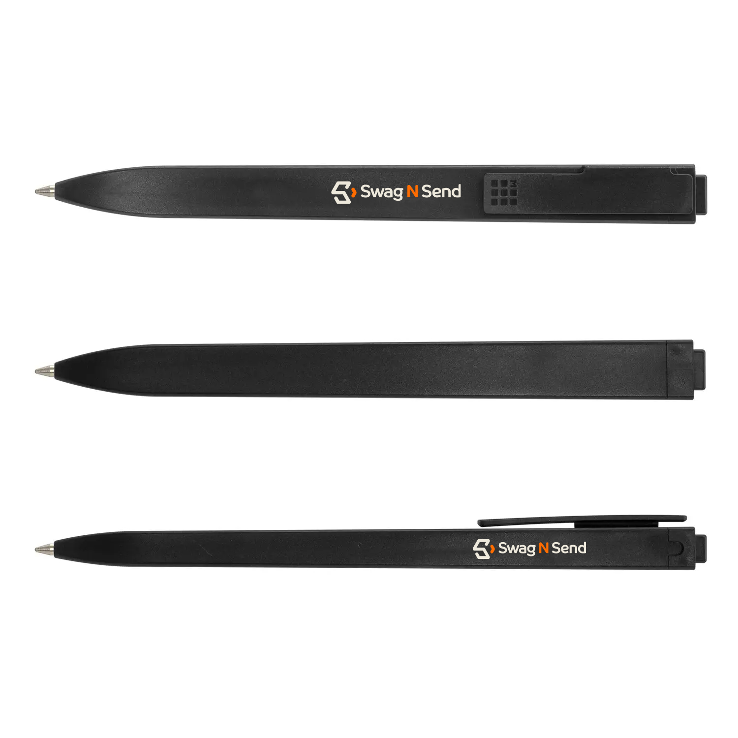 The retractable Go Pen from Moleskine is a constant note-taking companion and is crafted from high grade ABS. It has a unique side opening clip that attaches firmly and neatly to any Moleskine hard cover notebook or planner. The Go Pen has a Moleskine refill with 3500 metres of black ink and a 1.0mm ballpoint tip for a smooth writing experience. The Moleskine logo is subtly debossed on the clip. Please note this product cannot be supplied unbranded or without the Moleskine logo. Moleskine reserves the right to decline any custom project or artwork that does not align with their brand on a case-by-case basis.