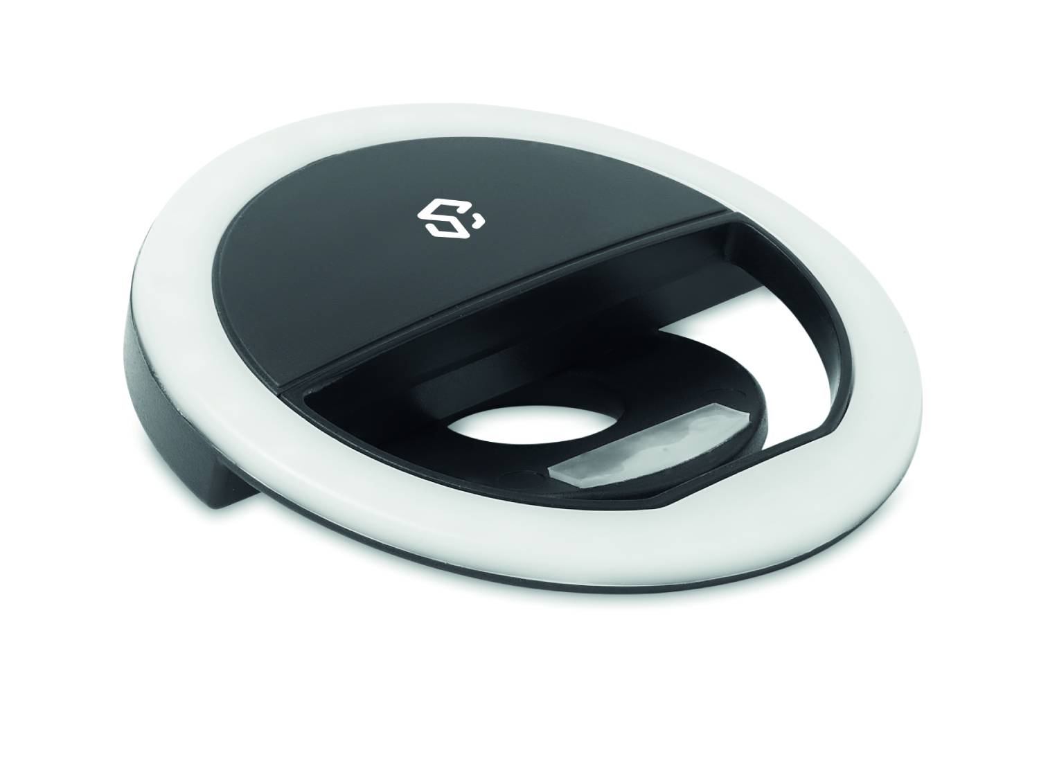 Compact selfie ring light made from ABS and equipped with 28 LEDs. Ideal for creators who record TikTokยฎ videos or shoot Instagram content, this light is an essential tool. The white illumination offers three adjustable brightness levels for optimal exposure. With the LEDs arranged in a circular layout, it provides smooth, even lighting across the face. Powered by a USB-rechargeable 80 mAh battery.